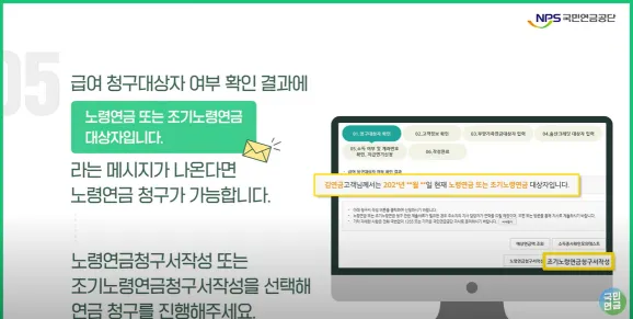 5. 급여 청구대상자 여부 확인 결과 노령연금 또는 조기노령연금 대상자입니다.