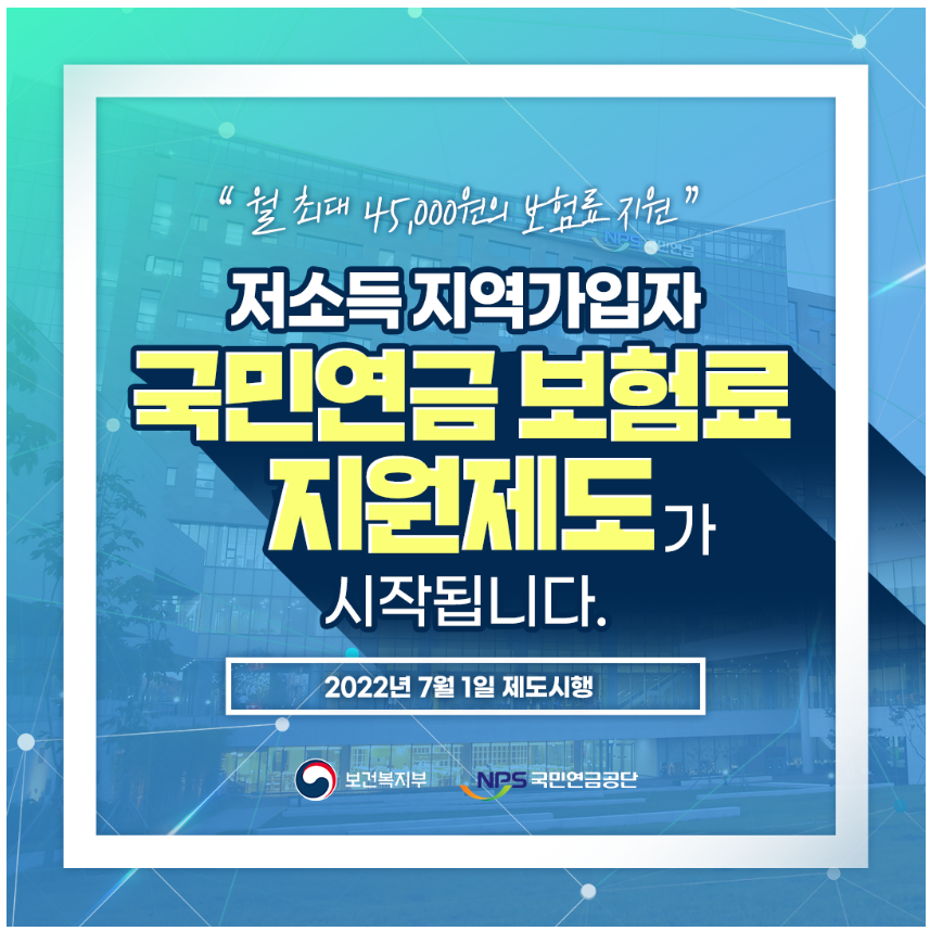 국민연금 지역가입자 보험료지원으로 복지의 사각지대에서 해소되기를 바랍니다.